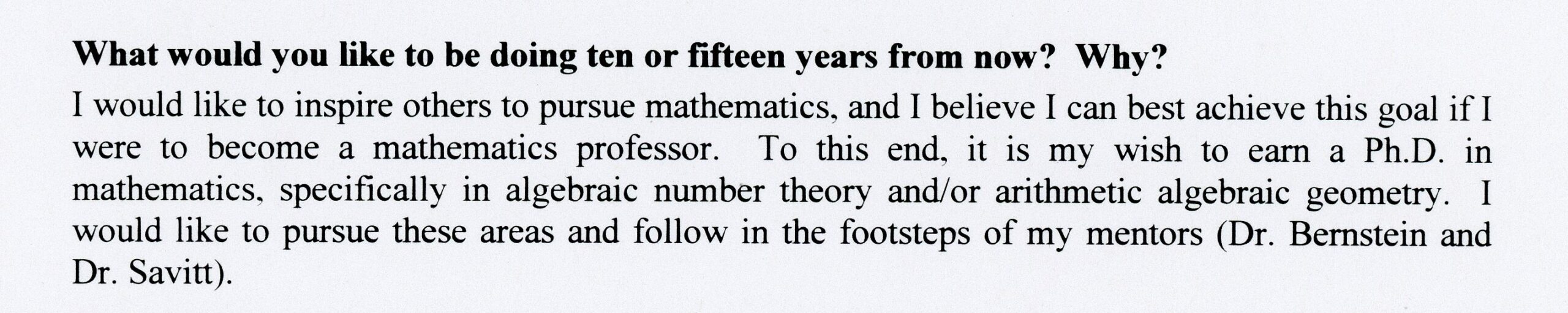 An excerpt from Balakrishnan’s entry form for STS in 2002 about her hopes for her career and her contributions to science.