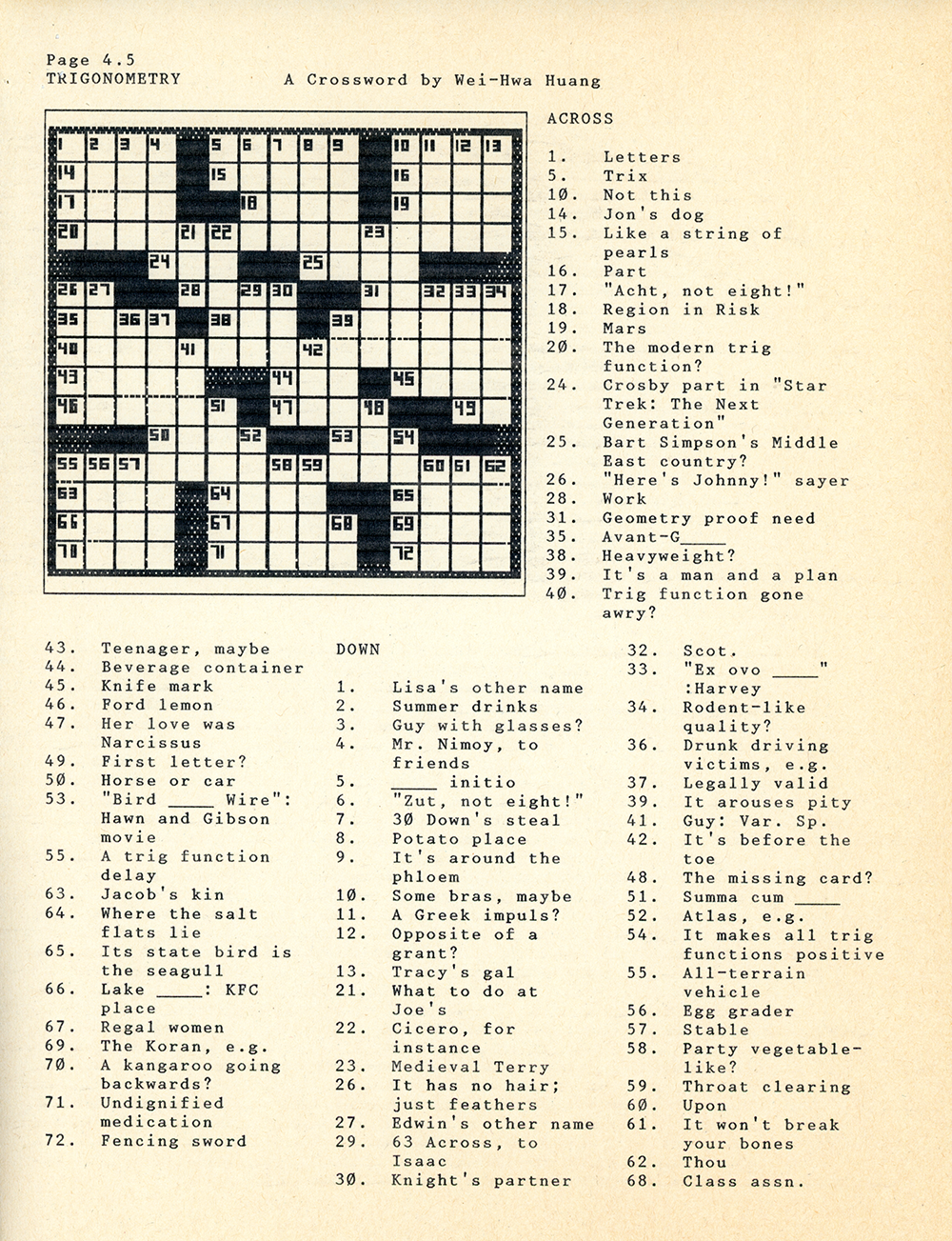 Huang’s first crossword, which he included in his STS application. He wrote, “I was curious to see if I could write a successful crossword puzzle, and I think I did.”