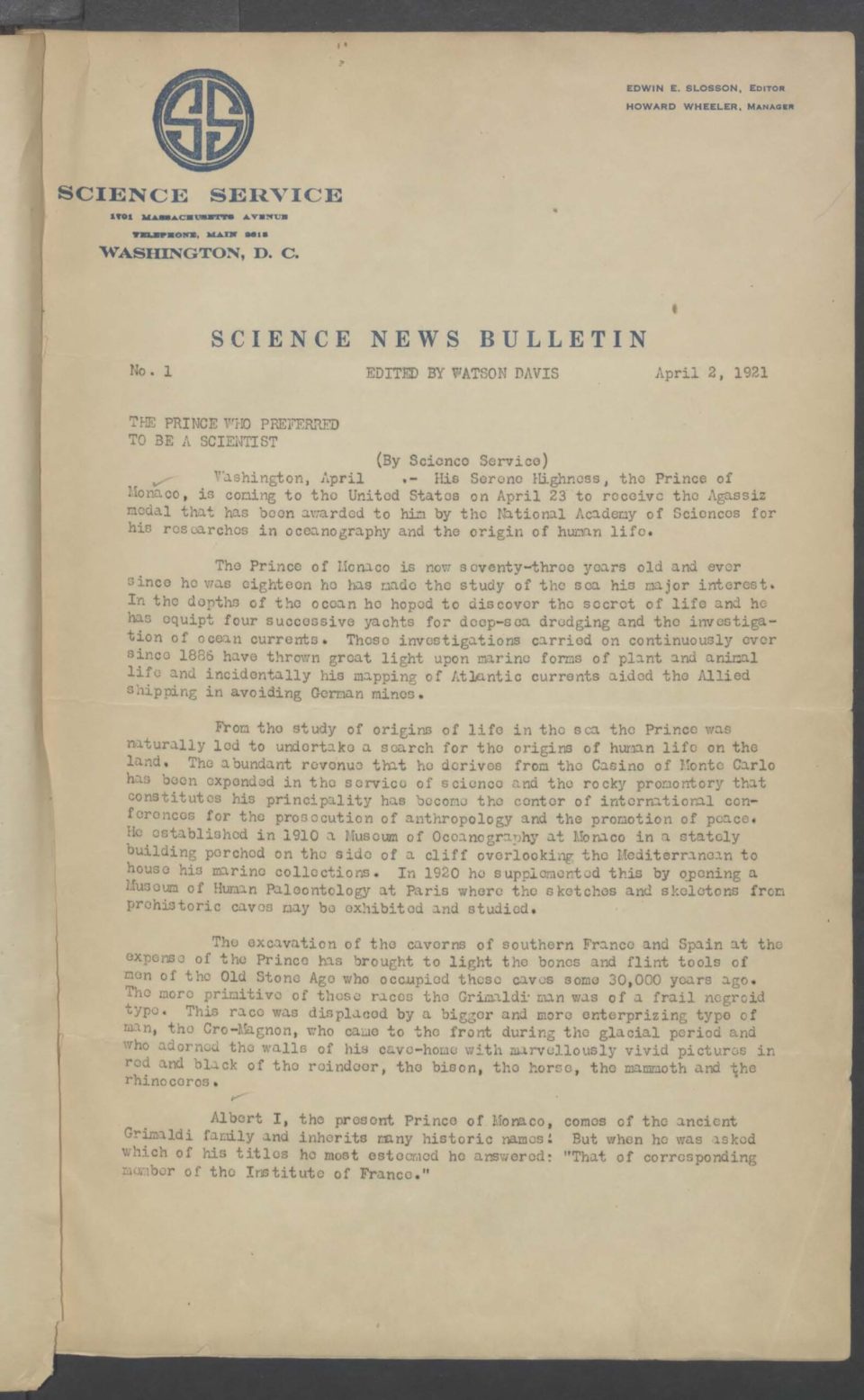 Browse the Science News archives, dating back to our very first news bulletins in 1921.