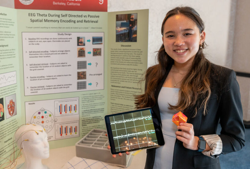 Elizabeth Shen won the $10,000 Marconi/Samueli Award for Innovation for her project— designing a system to better manage the wear on a computer’s memory— inspired by the growth pattern of certain flower petals.