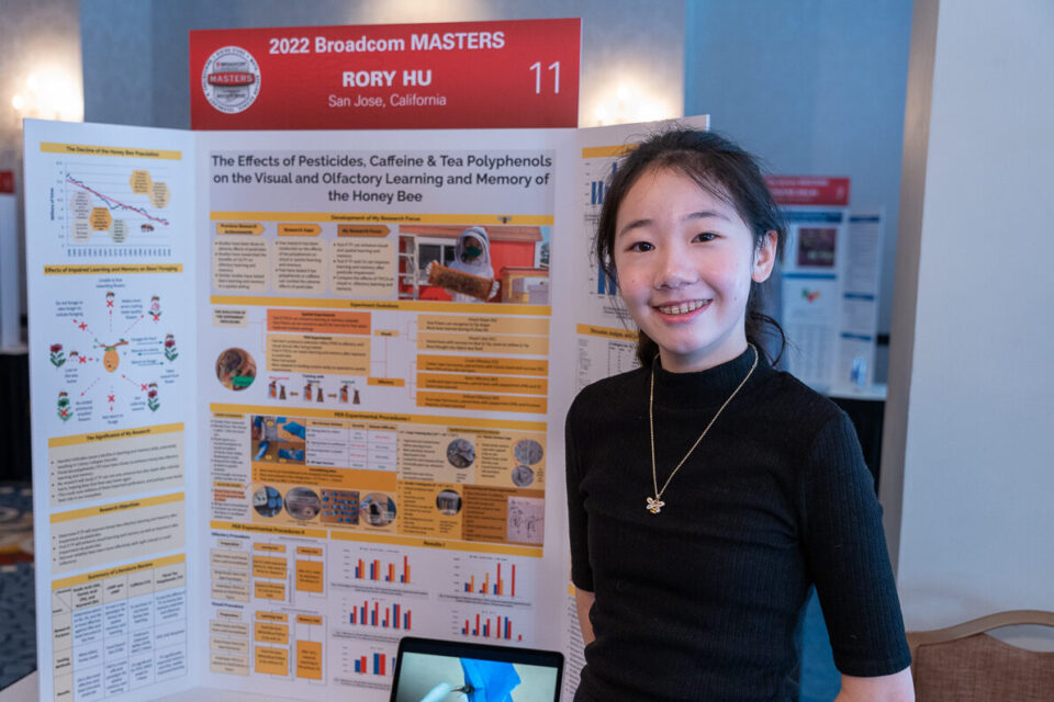 Rory Hu won the $10,000 DoD STEM Talent Award for her research on honeybees that suggests that feeding bees tea polyphenols and caffeine could boost their ability to learn and remember.
