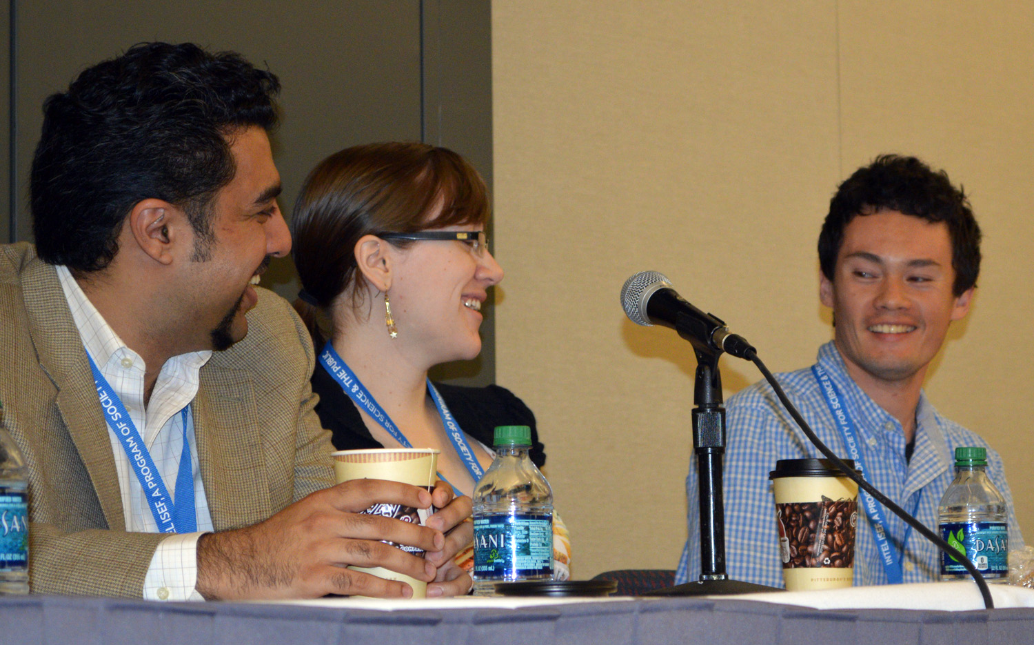 Alumni panelists Shantanu Gaur (Intel ISEF 2003, 2004), Laura Herlant (Intel ISEF 2008), and Vincent Howard (Intel ISEF 2003) shared a laugh with the audience while discussing how Intel ISEF helped lead them to their illustrious career paths.