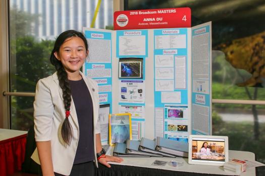 Anna Du, age 12, from Andover, Massachusetts, is concerned about the challenging environmental problems in the world, that seem to be getting worse by the day. Her research focuses on the abundance of microplastics in our oceans and how to remove them. As of 2017, more than 8 million metric tons of plastic have been dumped into the ocean. These plastics become toxic when ingested by microorganisms and that toxicity quickly makes its way up the food chain.
