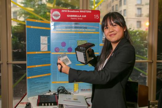 Gabriella Lui, age 14, from Palatine, Illinois, invented a method for keeping track of children when they are at school. Gabriella created smart tags using radio frequency identification (RFID) technology, which could be placed on clothes—these tags are able to constantly transmit the location of those wearing them which will then be relayed to the proper school authorities. She tested her invention in common student spaces to see how well the radio waves could travel through concrete classrooms or metal school buses. Her invention allows parent to locate their children in a potential emergency during school hours.