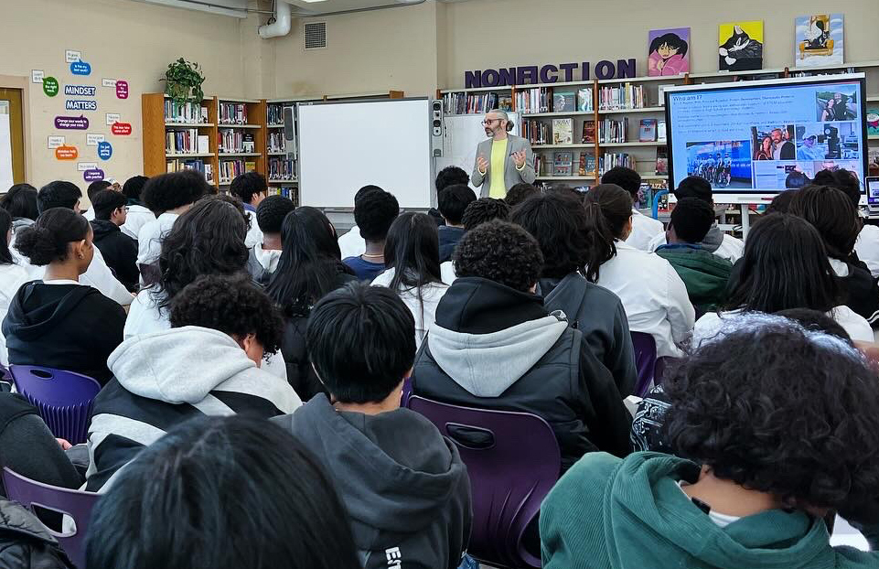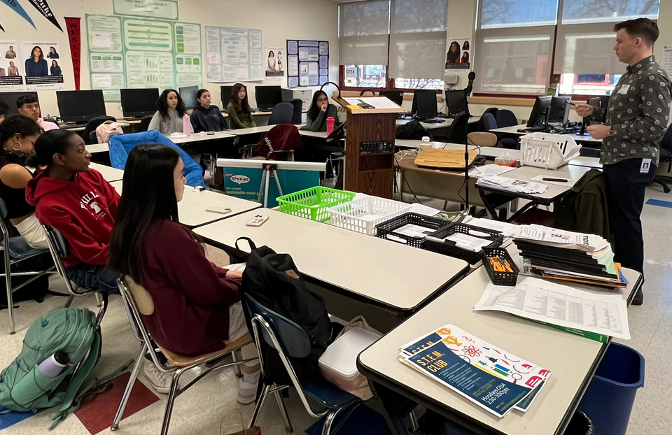 Meeting with students in their classrooms or in larger assembly spaces, the scientists explained their research and engineering design processes, while also relating concepts students have learned in class to their real-world applications. Visit preparation included identifying one relevant Science News Learning resource so students could review relevant curricular content or a recent research application to better engage with the scientist’s area of work. During the visits, the scientists also connected with students by sharing their education and career journeys, discussing the challenges of their research and answering many student questions.