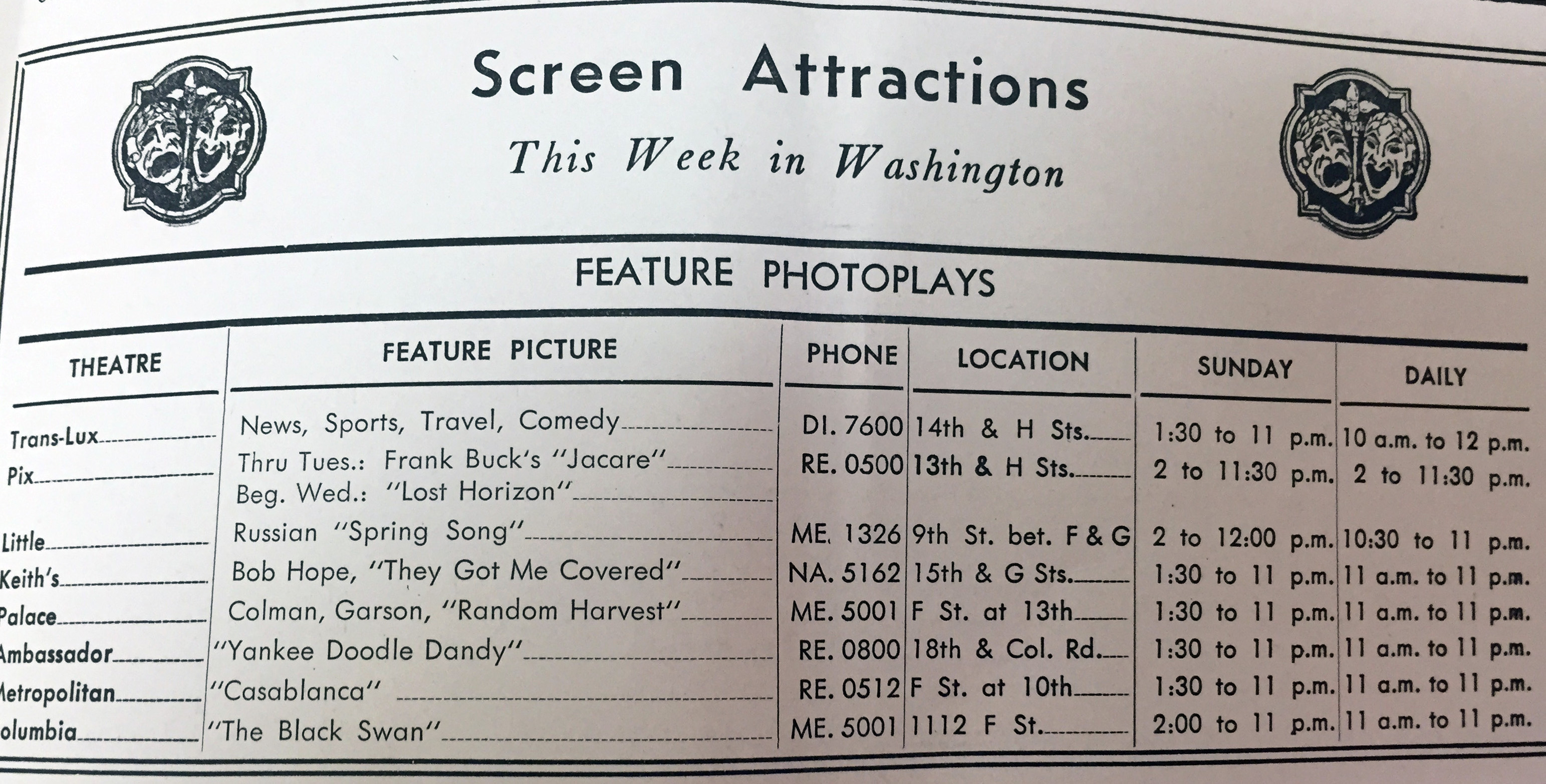 It means that Casablanca was the big blockbuster playing at the theatres in Washington, D.C.: