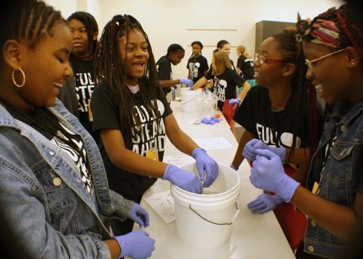 The workshops provided the girls with opportunities to explore a wide range of subjects and career paths within STEAM. “Let’s Get Crispy,” for instance, taught students about the gene editing technology, CRISPR. Students in “Water Treatment Purification” learned about environmental engineering and then built a drinking water column to clean water.