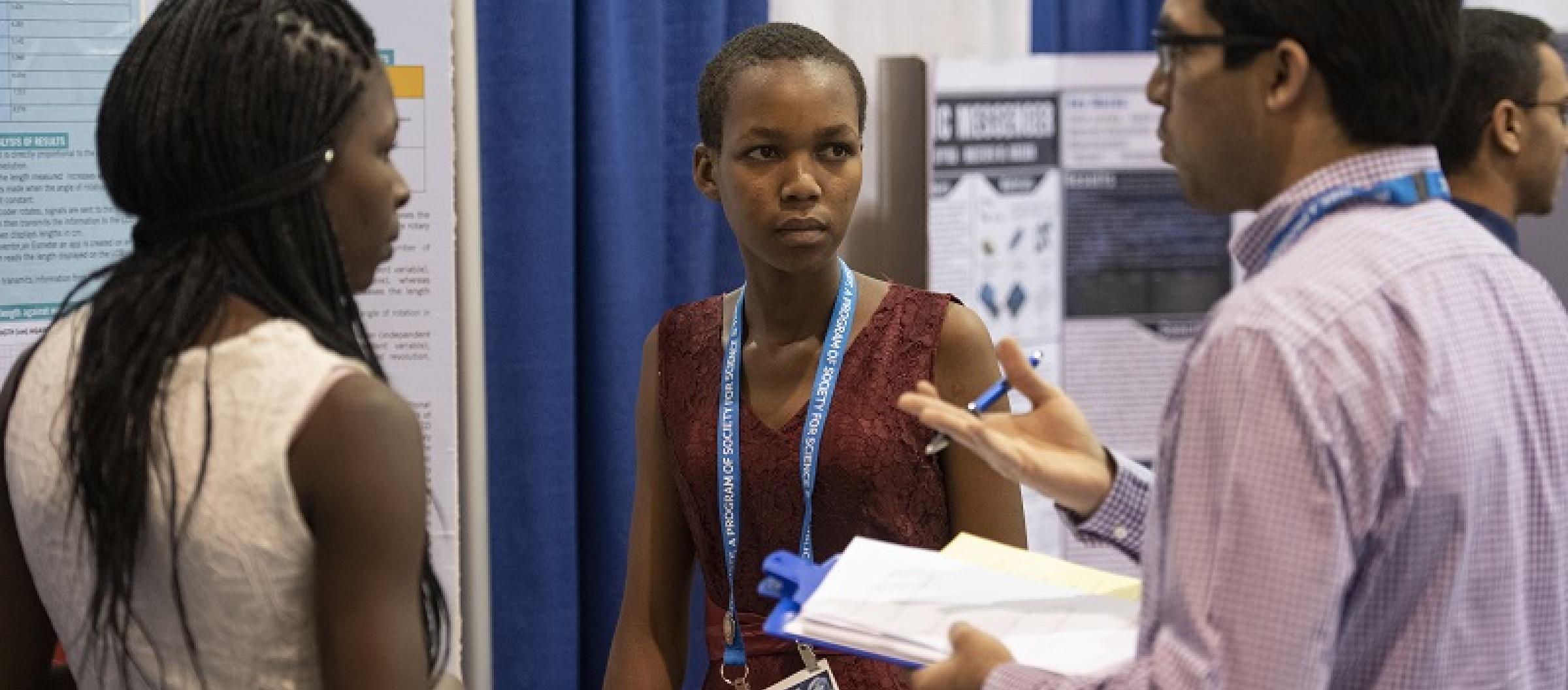 Although Peter has been teaching math and physics for about 12 years, this was the first year he attended Intel ISEF. The overall experience included some more firsts—Esther and Salome were first-time finalists, and their 15,000-kilometer flight to Phoenix, Arizona was their first time on a plane. “They come from very poor backgrounds and have been learning in resource-constrained environments, but they are intelligent, creative, hardworking and curious to learn,” said Peter.